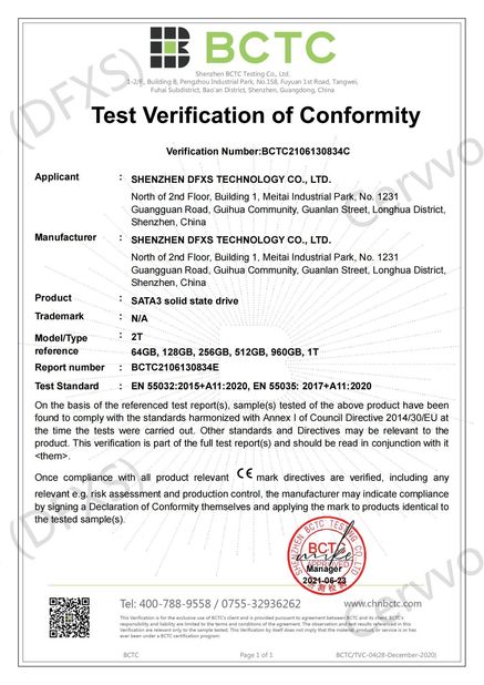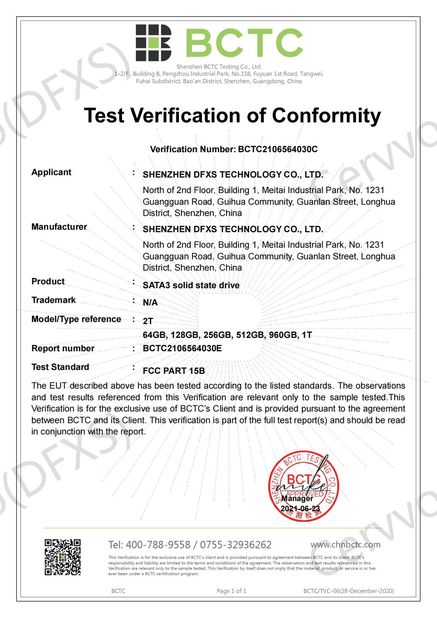 | Tiêu chuẩn: | FCC for SATA3 solid state drive |