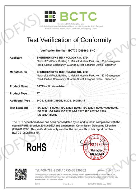 | Tiêu chuẩn: | RoHS for SATA3 Solid State Drive |