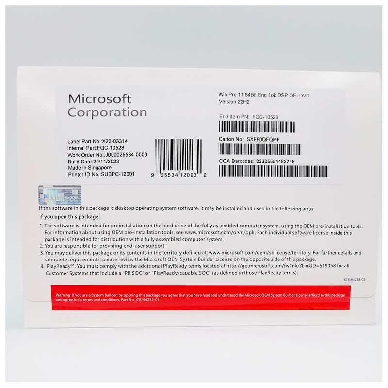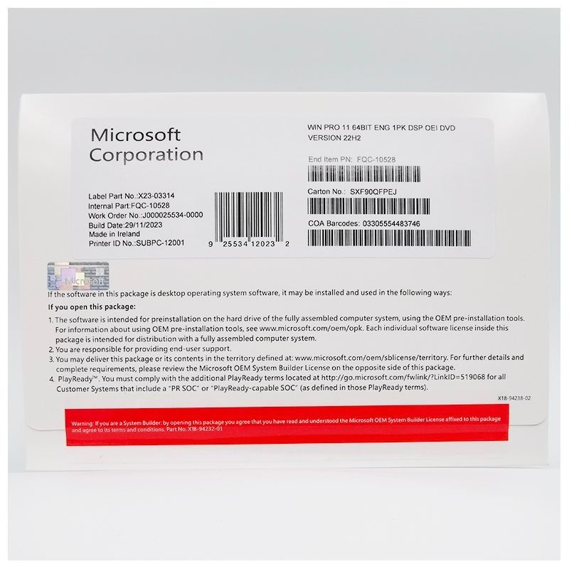 Bản gốc Win 11 Pro OEM 64 bit DVD,Tiếng Anh, Hàn Quốc, Nga, Pháp, Đức, Tiếng Ý